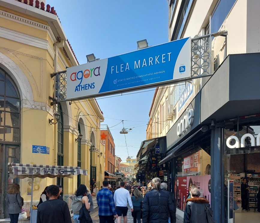Ho preso una stanza carina in una struttura nel centralissimo quartiere di Monastiraki. Il treno (o la metro, non ho ben capito) impiega 40 minuti. Sui mezzi le mascherine sono obbligatorie ma in pochi le usano, me compreso, non ne ho nemmeno una nello zaino. La stazione di Monastiraki si affaccia su una piazza che, quando esco, mi fa pensare di essere in un mercato arabo: bancarelle, ambulanti, bancarelle ambulanti, locali, chioschi, tante voci e confusione, un enorme viavai di gente. Tutto molto bello. A lato noto una strada stretta che è proprio l’ingresso di un mercato. La mia stanza è poco distante. Si trova al terzo piano di un piccolo edificio la cui entrata è all’interno di un locale. Locale anonimo fuori e fantastico dentro, un elegante cocktail bar e ristorantino arredato in modo stravagante e curato. Al terzo piano, interamente ristrutturato, ci sono dieci camere. La mia è sì carina ma grande quanto il bagno di casa e il bagno quando il mio armadio. OK, esagero eppure ho l’impressione che sia tutto in miniatura, il lavandino ad esempio è piccolissimo. Oltre alla chiave della stanza trovo nella cassettina con combinazione anche un telecomando per aprire e chiudere le tapparelle che però non ci sono. La smart TV pare abbia Netflix, magari stanotte inizio una nuova serie. E’ ora di pranzo ma non ho voglia di sedermi da qualche parte per mangiare, ho voglia di gironzolare e perdermi tra le stradine. Prendo una specie di calzone al formaggio che mangio al volo e inizio a camminare senza meta. Mentre scrivo non so ancora che posti ho visitato, lo capirò meglio nei prossimi giorni. Sicuramente ho attraversato metà del quartiere e ho percorso un vialone, immagino famoso, pieno di negozi alla moda, la via del Corso di Atene. Infatti mi sono stufato presto. Mi sono goduto invece la via del mercato accanto la stazione (Flea Market si chiama) e un vicino mercato dell’antiquariato che riempie una piazzetta suggestiva. Tra gli altri percorro un viale che sale verso l’Acropoli, visita prevista per domani. Ci sono tante bancarelle ai lati, in una di questa noto una scatoletta di legno con sopra una targa in metallo con l’incisione di un planisfero e all’interno un’altra targa e una piccola bussola. Non è un oggetto raro né di valore ma mi piace, contratto sul prezzo e lo prendo. Mi fermo a bere una birra in una terrazza con vista dal basso sul Partenone. Torno in camera per una doccia e ricaricare il telefono. Ed è subito sera. Giro per Plaka, il quartiere adiacente, noto per la movida. Me lo aspettavo più vivace. Cerco un posto per cenare, c’è l’imbarazzo della scelta tra decine e decine di locali tutti invitanti. Alla fine mi seggo da “Good Wolf”, credo si chiami, che si presenta bene, alla mano e colorato. I piatti tipici greci sono quasi sempre a base di carne per cui è difficile per me provare qualcosa di caratteristico, non sono vegetariano ma non mi sta simpatica la carne. Opto per il saganaki (dal menu: bedouin saganaki cheese with pastrami) che scopro essere formaggio saltato in padella molto saporito e poi prendo il bouyiourdi, un antipasto di feta, pomodori, peperoni, cipolle, olive e altri condimenti, qui servito con tre tipi di formaggio, buonissimo. Bevo una Momos, che suppongo sia una birra greca.