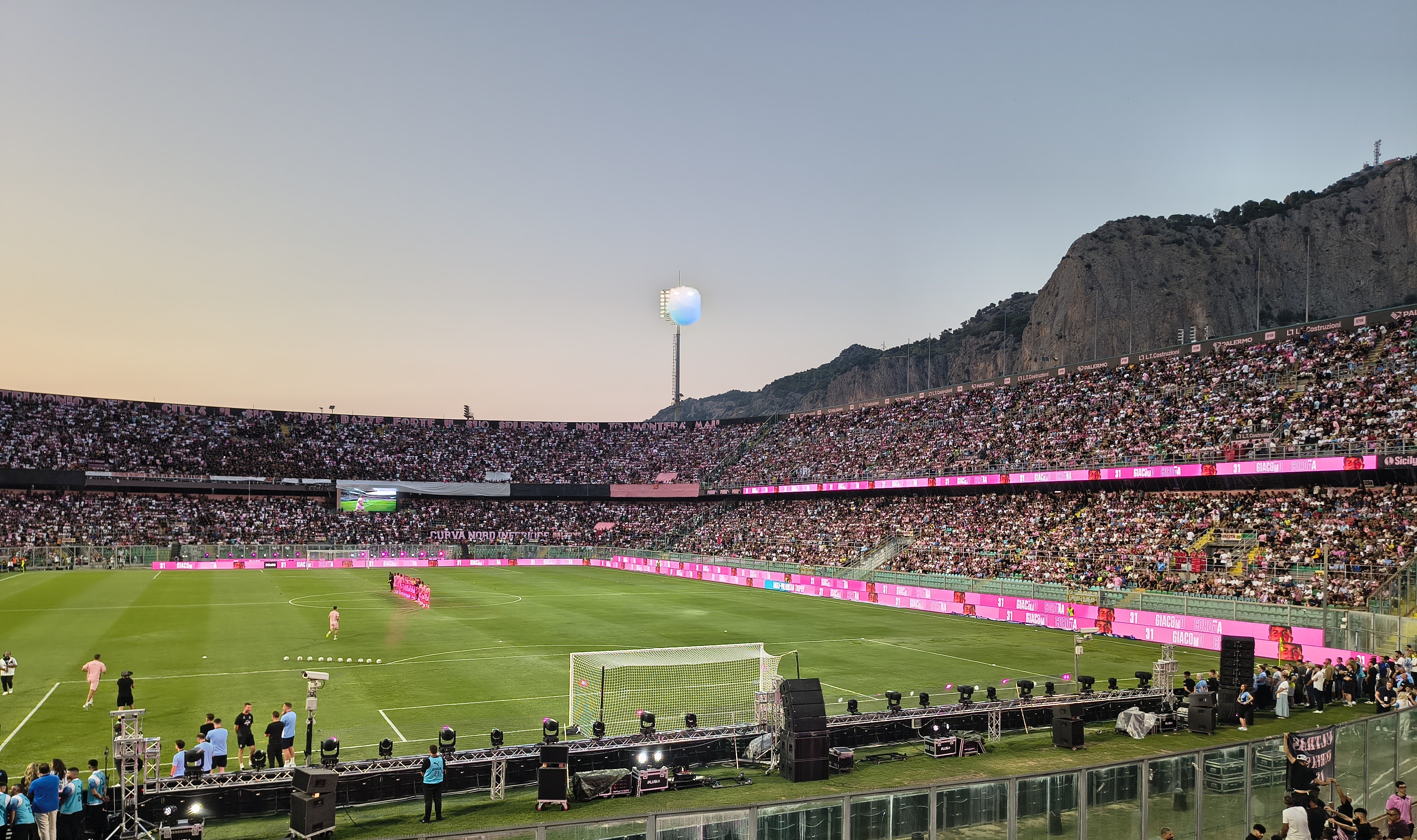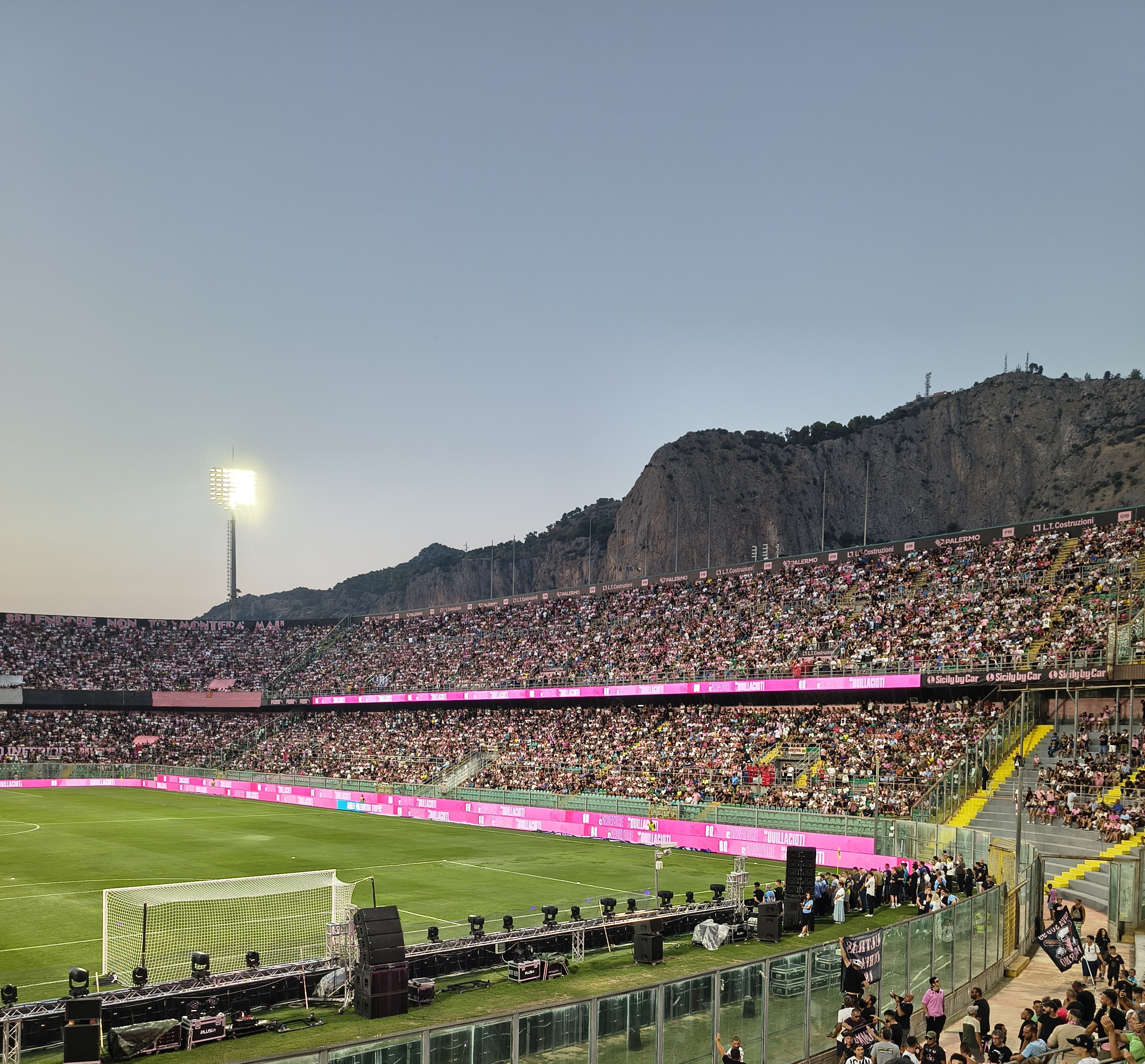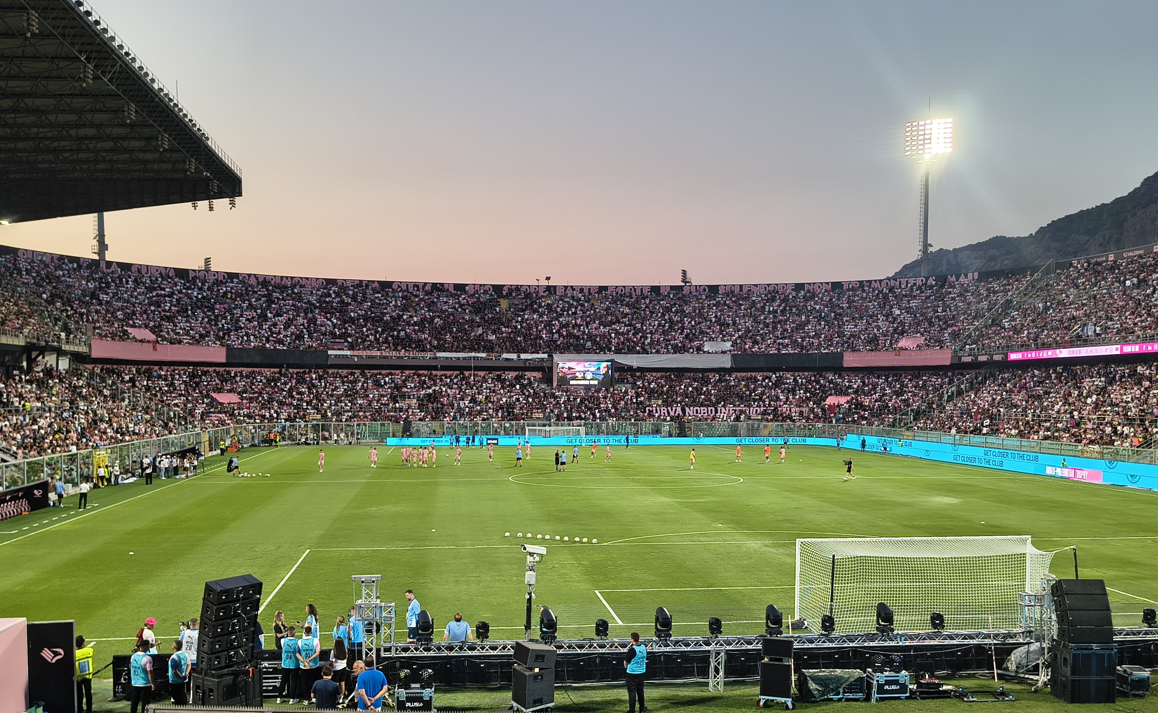 Mi sono divertito. Probabilmente tornerò allo stadio solo per un’improbabile, quanto impossibile, finale di Champions, ma mai dire mai. Come dicevo, non ero lì per la partita, ero lì per lo spettacolo e quello non è mancato. Al di là dei campioni in campo, oltre che degli allenatori, le star Pippo Inzaghi e Pep Guardiola, mi sono lasciato conquistare da uno scenario importante, dal tramonto sul Barbera, dai giochi di luce, dalle famiglie con bambini di ogni età, dagli anziani e pure dalla fauna locale, forse l’aspetto più caratteristico. Ho ammirato i cori e le scenografie, specialmente quelle della curva nord che ha mostrato una gigantografia di Liam e Noel Gallagher, ovvero gli Oasis, tifosi del City, con addosso due maglie storiche del Palermo. Ho apprezzato anche l’intrattenimento e la musica, tranne che quella di tale Rose Villain, ospite a me sconosciuta, esibitasi in un paio (forse tre, forse quattro) di canzoni prima del match. Mi dicono che sia di Milano ed interista, in pratica non c’entrava niente. Ma vabbè.