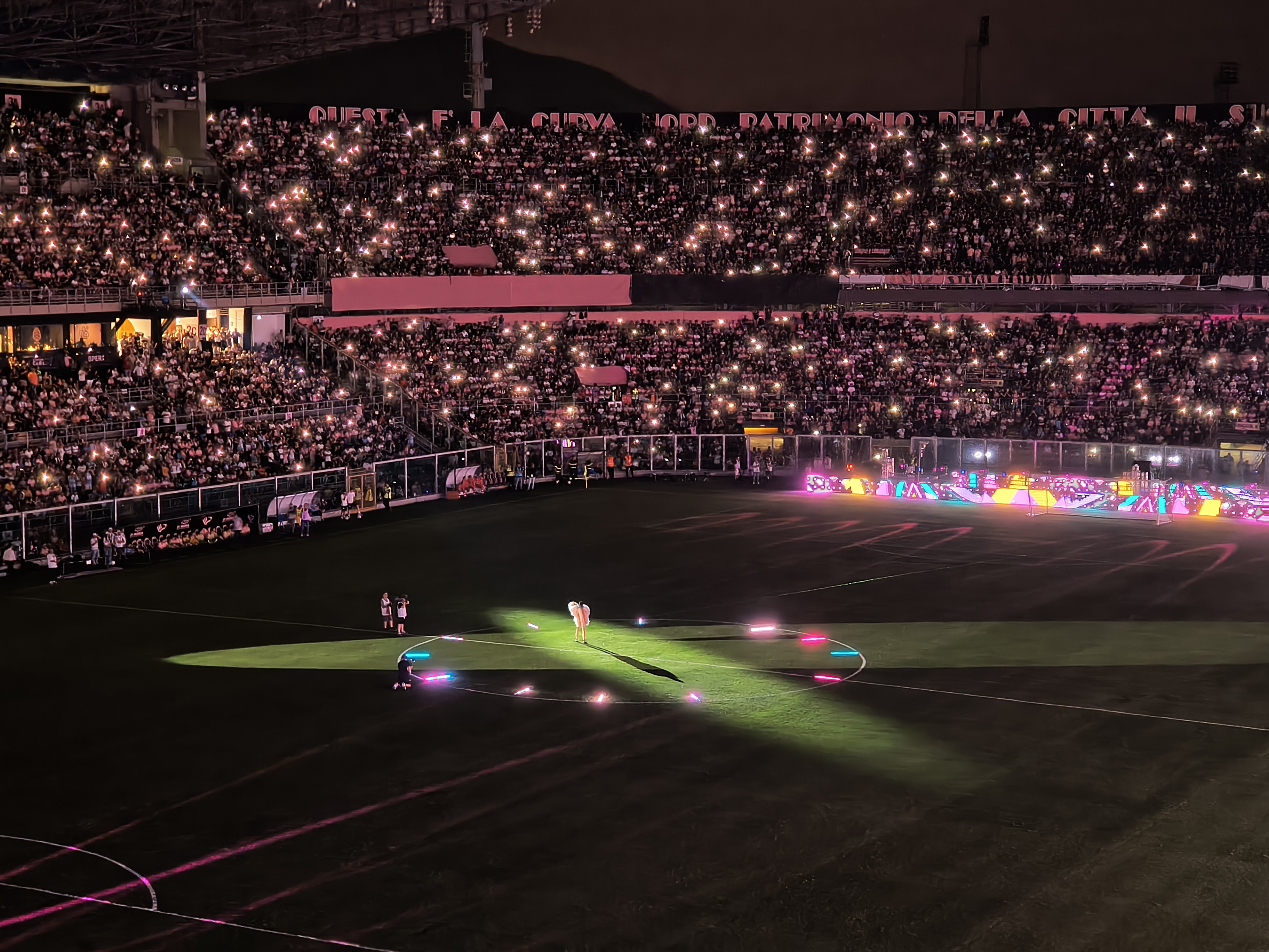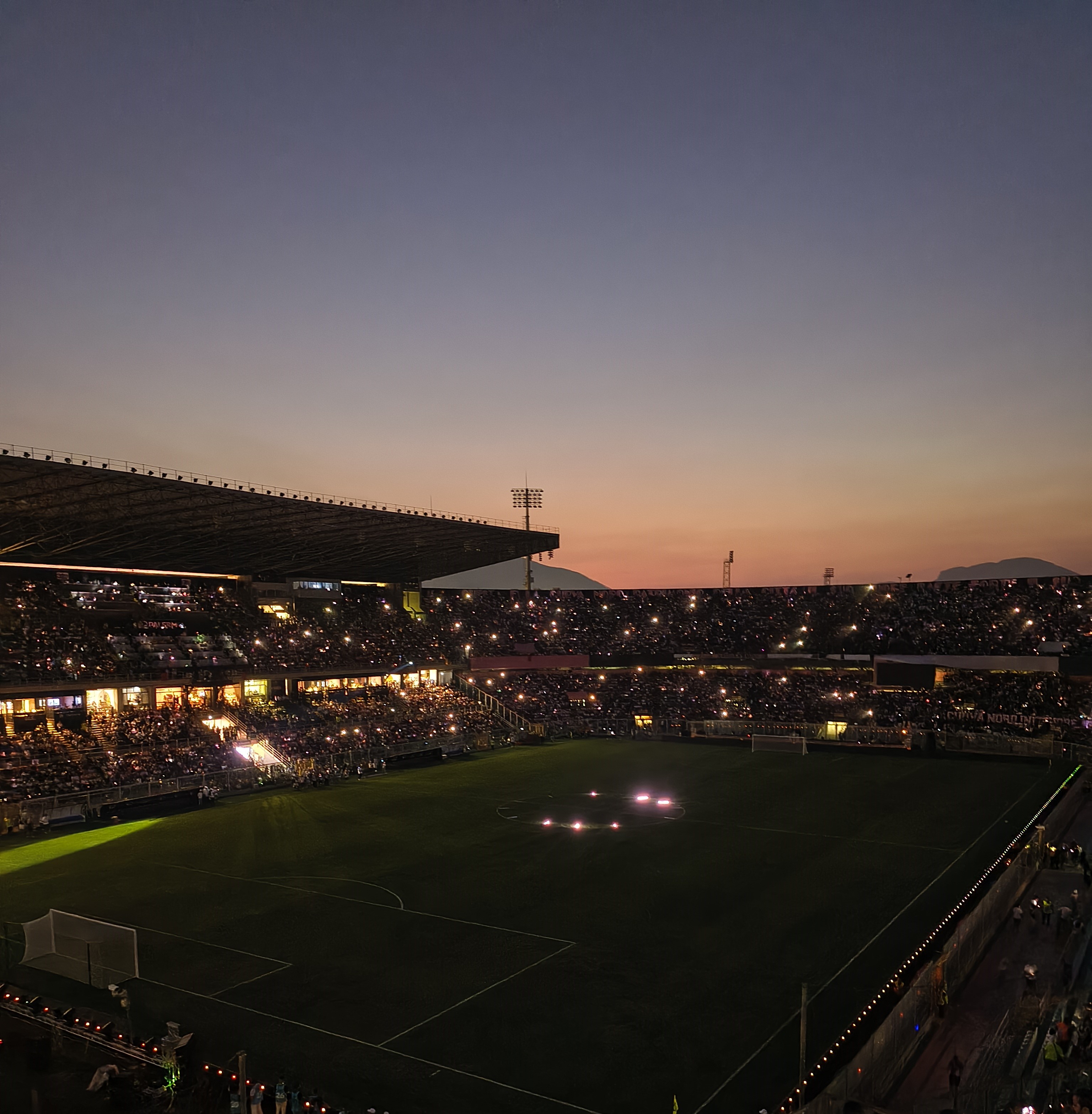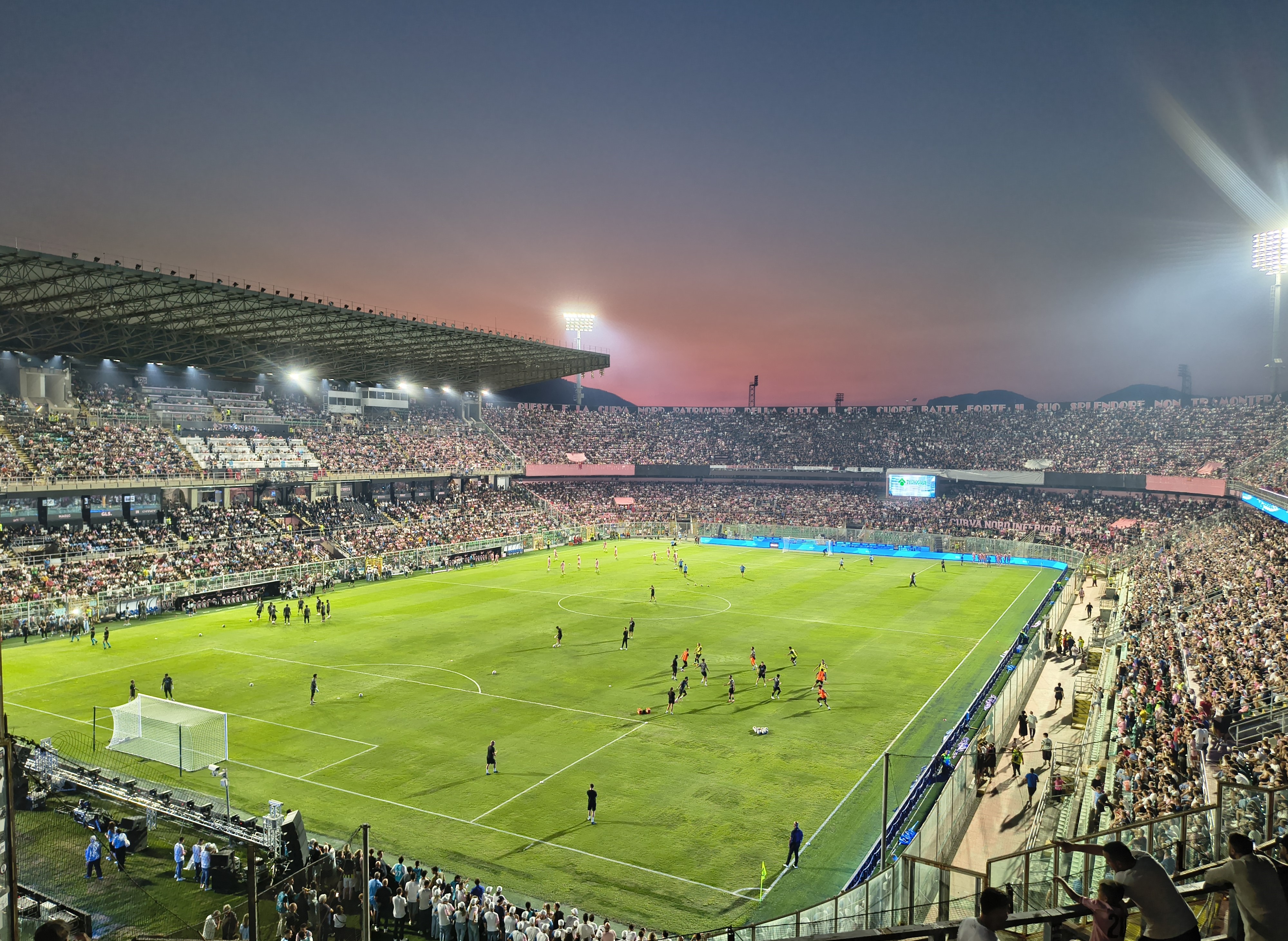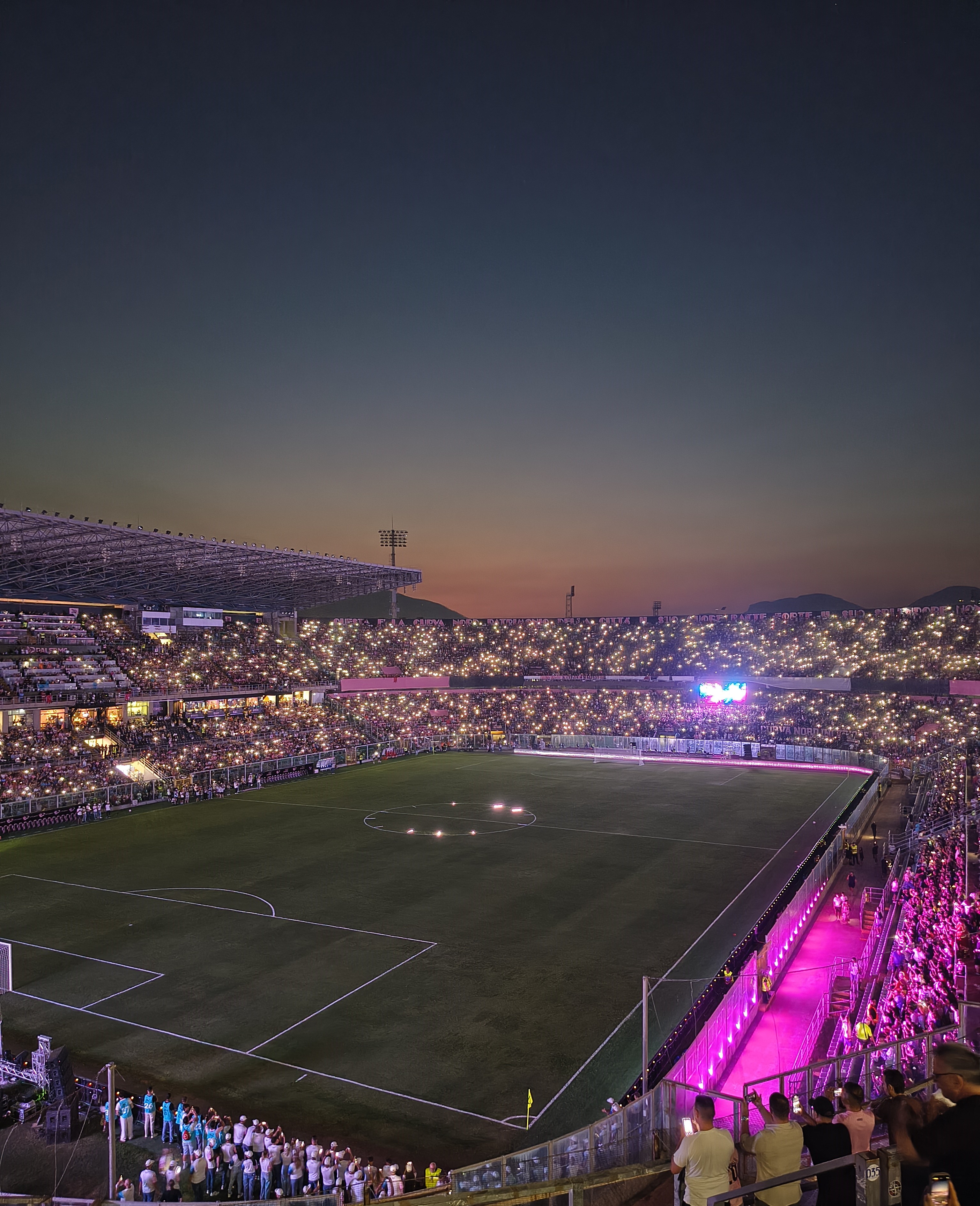 Mi sono divertito. Probabilmente tornerò allo stadio solo per un’improbabile, quanto impossibile, finale di Champions, ma mai dire mai. Come dicevo, non ero lì per la partita, ero lì per lo spettacolo e quello non è mancato. Al di là dei campioni in campo, oltre che degli allenatori, le star Pippo Inzaghi e Pep Guardiola, mi sono lasciato conquistare da uno scenario importante, dal tramonto sul Barbera, dai giochi di luce, dalle famiglie con bambini di ogni età, dagli anziani e pure dalla fauna locale, forse l’aspetto più caratteristico. Ho ammirato i cori e le scenografie, specialmente quelle della curva nord che ha mostrato una gigantografia di Liam e Noel Gallagher, ovvero gli Oasis, tifosi del City, con addosso due maglie storiche del Palermo. Ho apprezzato anche l’intrattenimento e la musica, tranne che quella di tale Rose Villain, ospite a me sconosciuta, esibitasi in un paio (forse tre, forse quattro) di canzoni prima del match. Mi dicono che sia di Milano ed interista, in pratica non c’entrava niente. Ma vabbè.