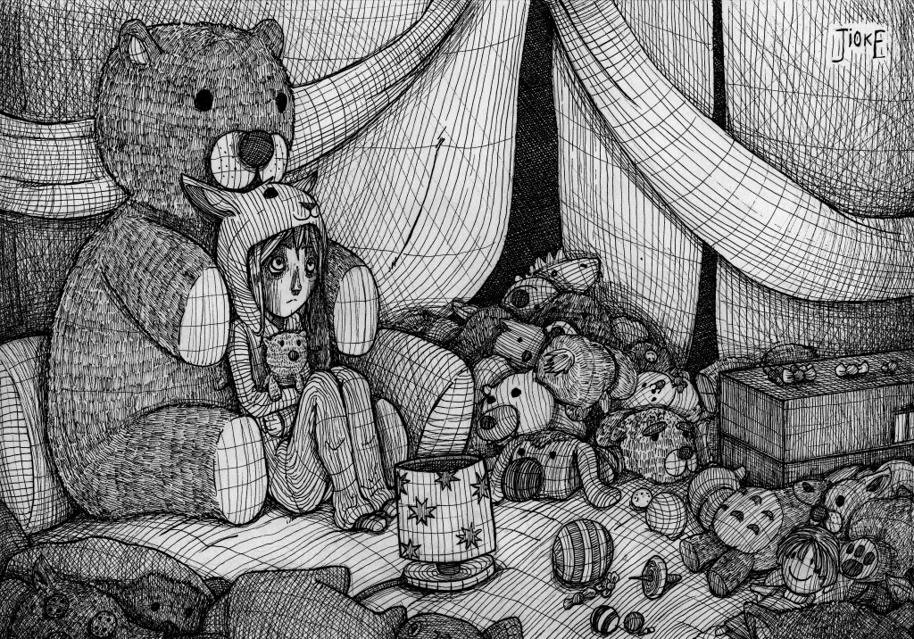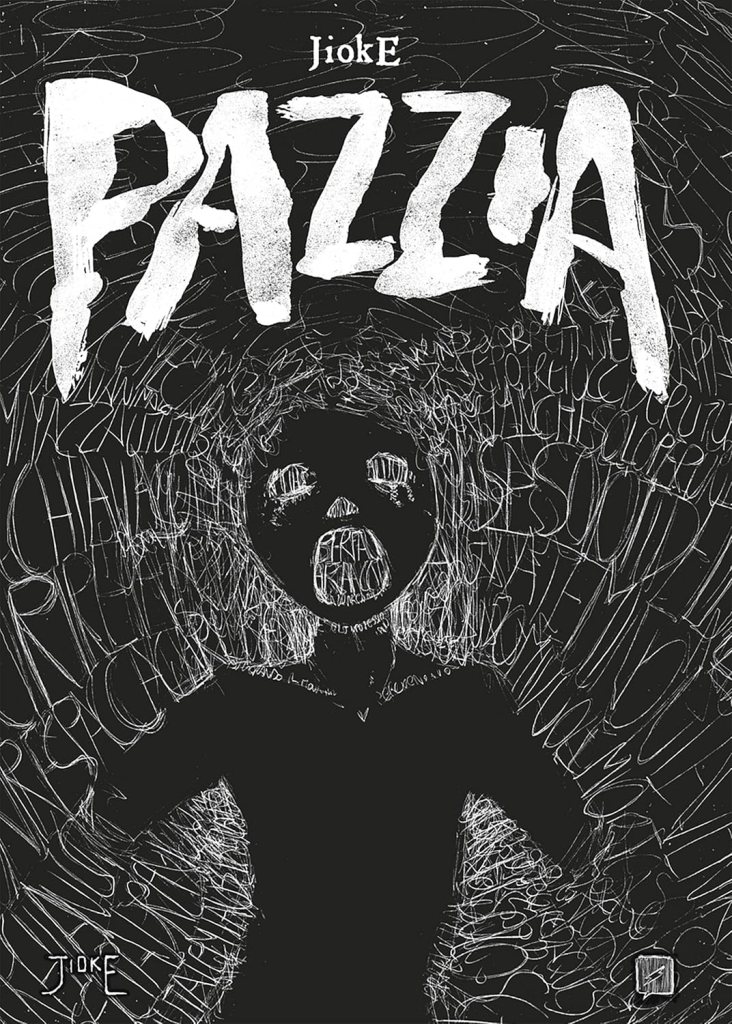 Jioke, al secolo Giovanni Dell’Oro, è un giovane fumettista che ha raggiunto la notorietà sul web pubblicando brevissime storie horror dai toni disturbanti e con finali sorprendenti. Sono arrivato a lui tramite il passaparola ed è la prima volta in vita mia che mi imbatto in un fumetto davvero pauroso. Di quelli che sposti gli occhi da una vignetta a quella accanto e un sussulto ti paralizza per un paio di secondi. Non mi era mai capitato. Si tratta di horror psicologico, dove il terrore risiede più nell’immaginazione e nel contesto che nelle scene. Non c’è sangue quindi, ma l’autore non si pone limiti e, che si tratti di violenze domestiche, bullismo o follia pura, i temi toccati non lasciano indifferenti. Il finale, in alcuni casi, mantiene un’interpretazione aperta o simbolica. In tutti gli altri è una vignetta, una sola, a chiudere in modo perentorio e agghiacciante il racconto. Il disegno rappresenta senza dubbio un punto di forza: il chiaroscuro e il tratto graffiato, a matita o penna sottile, spesso irregolare e con linee sovrapposte, creano vibrazione e instabilità, quanto serve per mostrare atmosfere claustrofobiche e personaggi ambigui e deviati. Questi hanno parvenze sproporzionate, volti deformati, occhi grandi, mani allungate. Restano inquietanti anche quando non rappresentano il male. Pazzia è la prima pubblicazione di Jioke, di qualche anno fa. Include ciò che aveva messo online sul suo sito, tra l’altro WordPress (interessante per comprendere le sue opere), più due inediti. Nel frattempo, sono usciti altri tre libri, sempre dello stesso genere. Sarebbe una pazzia non andarli a recuperare.